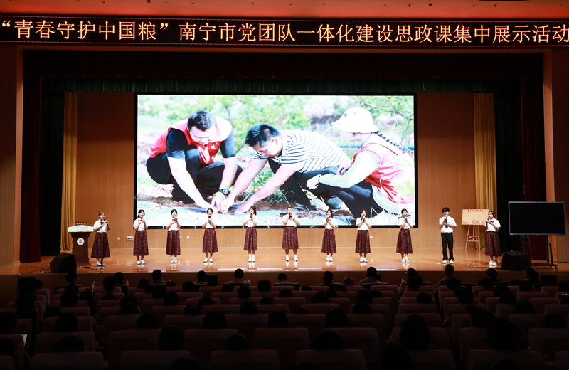 9月29日上午,由广西工商职业手艺学院结合共青团南宁市委、少先队南宁市工做委员会配合从办的“芳华守护中国粮”南宁市党团队一体化扶植思政课集中展现勾当正在该校武鸣校区举行。
